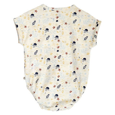 Sea Printet Body fra Müsli er en skøn og komfortabel body til de mindste, fremstillet i blød bomuld, der føles dejlig mod barnets hud. Bodyen har et charmerende print med små havmotiver i nuancer af tofu, hamp og navy, som giver et legende og sødt udtryk. Den har korte ærmer og en rummelig pasform, der sikrer god bevægelsesfrihed til barnet, uanset om det leger eller sover. De praktiske trykknapper i bunden gør det nemt at skifte ble, og den bløde halsudskæring gør det let at tage bodyen af og på. Müsli er kendt for deres fokus på komfort og kvalitet, og denne body er ingen undtagelse – den er perfekt til både hverdag og leg. Materialet er åndbart og skånsomt mod sart babyhud, hvilket gør den ideel til brug året rundt. Kombinér den med et par leggings eller bukser for et komplet og hyggeligt outfit.