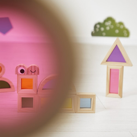 Se verden i lyserødt, blåt og grønt! Disse 12 smukke, gennemsigtige byggeklodser åbner op for en farverig og fantasifuld legeoplevelse. Sættet indeholder 6 trykte klodser med sjove motiver, der kan kombineres på kryds og tværs for at skabe en række skøre og søde dyr. Med de medfølgende 6 modelkort får barnet inspiration til at komme i gang – og derefter er det kun fantasien, der sætter grænser.
