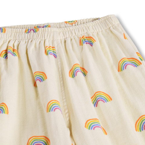 Serene Bukser fra Molo i Small Rainbows-print er et skønt valg til de mindste. Bukserne er lavet i blød bomuld, som føles behagelig mod huden og giver masser af bevægelsesfrihed til leg og hverdag. Det farverige regnbuemønster bringer glæde og gør bukserne ekstra charmerende. Med elastik i taljen og ved anklerne sidder bukserne godt uden at stramme, og de er nemme at tage af og på. Perfekte til både institution og hyggestunder derhjemme, hvor komfort og stil går hånd i hånd.