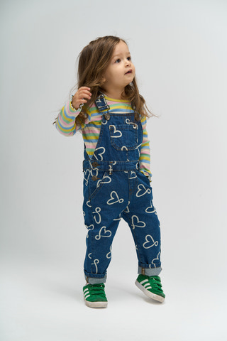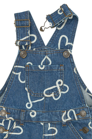 kundeservice@babysam.dkShea Denim Buksedragt fra The New Siblings er en charmerende og moderne denimdragt, der kombinerer klassisk blå denim med et legende all-over print af hjerter og sutter. Buksedragten er designet med justerbare seler, så den nemt kan tilpasses barnets højde og komfort, hvilket gør den ideel til både leg og hverdag. De praktiske lommer foran og på siden giver plads til små skatte, og knaplukningen i siderne gør det nemt at tage dragten af og på. Den bløde denimkvalitet sikrer god bevægelsesfrihed, og det søde print tilføjer et personligt og sjovt udtryk til garderoben. Buksedragten er perfekt til at kombinere med en t-shirt eller bluse under, og kan bruges året rundt – både alene på varme dage eller med en trøje under, når det er køligere. Shea Denim Buksedragt er et oplagt valg til børn, der elsker farver og sjove detaljer, og som ønsker en komfortabel og slidstærk buksedragt med masser af personlighed.