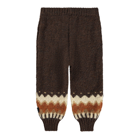 Bukser i en varm uldblanding med elastisk talje og ribkanter ved anklerne for en behagelig pasform. Nederst på benene prydes bukserne af et vævet nordisk mønster, der tilføjer et stilfuldt og traditionelt touch.