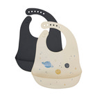 Spisesmæk i silikone. Praktisk hagesmæk der er blød og nem at bruge til baby og børn. Med praktisk opsamler der gør spisetiden nemmere.