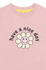 kundeservice@babysam.dkSille T-Shirt fra The New Siblings i farven Silver Pink er en skøn og komfortabel t-shirt til børn, der kombinerer et sødt design med praktisk funktionalitet. T-shirten er fremstillet i en blød og strækbar blanding af 95% bomuld og 5% elastan, hvilket sikrer en behagelig pasform og god bevægelsesfrihed til leg og hverdag. Den fine lyserøde farve og det glade print med en smilende blomst og teksten "have a nice day" gør t-shirten til et oplagt valg, når garderoben skal opdateres med noget både hyggeligt og sjovt. T-shirten har korte ærmer og en klassisk rund hals, som gør den nem at tage af og på. Den er ideel til både institution, skole og fritid, og kan nemt kombineres med både bukser, shorts eller nederdel. Materialet er let og åndbart, så barnet kan holde sig komfortabel hele dagen. Sille T-Shirt er et godt valg for forældre, der ønsker kvalitet og et positivt udtryk i børnetøjet.