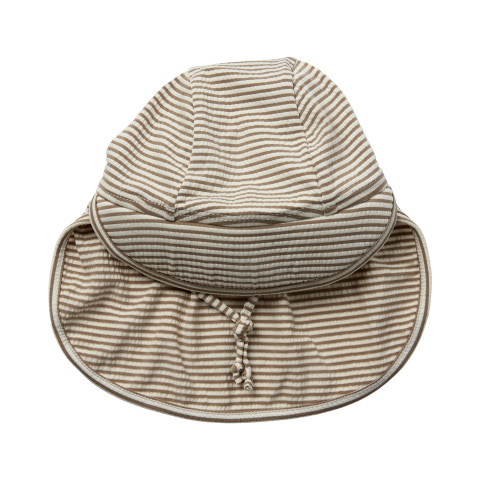 Sisi Solhat - Warm Stone Stripe fra Sofie Schnoor Kids er den perfekte solhat til de solrige dage, hvor dit barn skal beskyttes mod solens stråler. Solhatten har et flot og tidløst stribet mønster i varme, naturlige nuancer, der passer til enhver sommergarderobe. Den er designet med en bred skygge foran, der skærmer ansigtet, og en ekstra nakkeskygge, som beskytter nakken mod solen – ideelt til leg i haven, på stranden eller på ferien. Hatten har en praktisk justerbar snøre under hagen, så den sidder godt og sikkert, selv når barnet er aktiv. Materialet er en blanding af polyester, nylon og elastan, hvilket gør solhatten både let, åndbar og behagelig at have på. Den elastiske kvalitet sikrer en god pasform, og hatten er nem at tage af og på. Sisi Solhat kombinerer funktionalitet og stil, så du trygt kan sende dit barn ud i solen med optimal beskyttelse og et moderne look.
