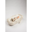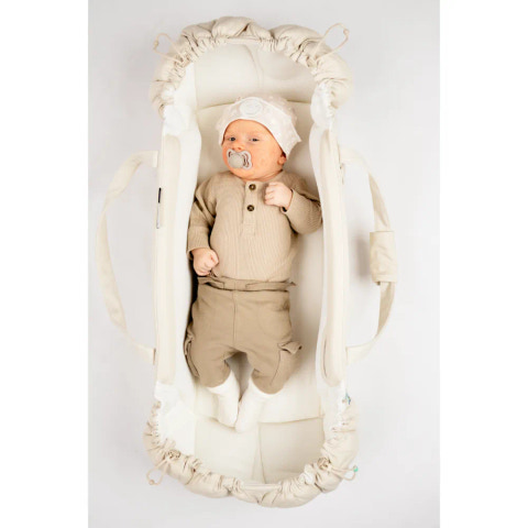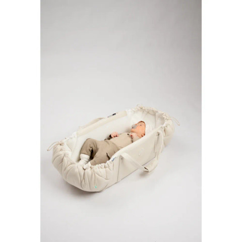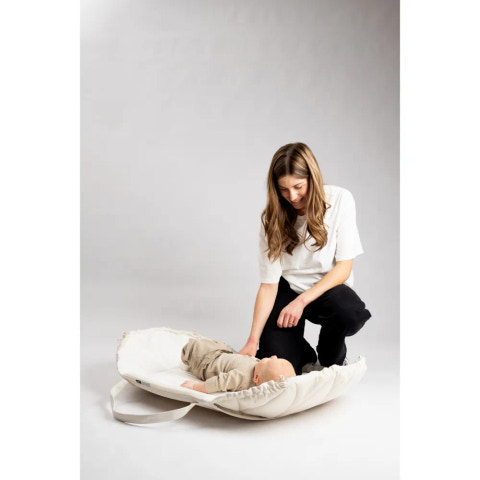 Du kan tilpasse størrelsen på babynesten efter din babys behov. Ved at justere snorene kan du nemt ændre babynestens størrelse. Du kan åbne den helt eller delvist. Når den er helt flad, forvandles den til et blødt legetæppe, så du og din baby kan øve jer i at ligge på maven sammen.