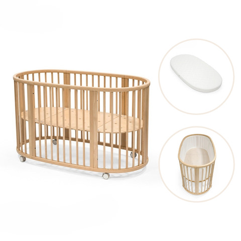 kundeservice@babysam.dkSleepi: Børnesengen er hjertet i børneværelset. Det skal være smukt, funktionelt og frem for alt sikkert og behageligt for dit barn. Stokke® Sleepi™ er lavet af massivt europæisk bøgetræ og kan justeres i både højde og længde, så det passer til barnets behov, når det vokser. Det bløde og ovale design giver barnet en følelse af tryghed og giver barnet mulighed for at sove behageligt og drømme sødt. Juster højden på madrasbunden, efterhånden som barnet vokser og begynder at klatre. Stokke® Sleepi™ sengen vokser med dit barn fra fødslen til 5 år. Når barnet når den nysgerrige klatrealder, kan man fjerne siden af sengen, så barnet lettere kan bevæge sig og opleve større frihed og selvstændighed. Når den ene side er fjernet skal hjulene tages af sengen! Dette vil også gøre barnet mere selvstændigt. Stokke® Sleepi™ konceptet er udviklet med god søvn og sikkerhed i fokus.