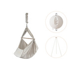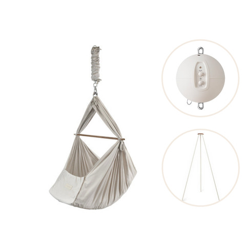 Stativ: Stilfuldt, sikkert og enkelt – med et Moonboon stativ kan du fastgøre din vugge eller slyngevugge, hvor du vil, så du altid kan holde øje med din sovende baby. Dette specialdesignede stativ er fremstillet i overensstemmelse med de strengeste europæiske sikkerhedsstandarder, så du kan være sikker på, at dit barn sover trygt og godt, så længe det har brug for det. Med tre ben i slanke, runde profiler er stativet let at samle og pakke væk, når det ikke er i brug, hvilket gør det både alsidigt og bærbart. Stativet er 194 cm højt og kan holde en vugge eller slyngevugge samt en vuggemotor.