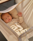 Moonboon Slyngevugge er specielt udviklet til at sikre søvnen for de mindste. Det bløde, økologiske stof mindsker lydene, så nærheden og trygheden forstærkes, og de vuggende bevægelser minder baby om tiden i livmoderen. I de rolige omgivelser falder barnet hurtigt til ro og overgiver sig til søvnen.