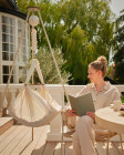 Økologisk - Naturlig og Elegant Den ergonomiske slyngevugge er skabt med særligt fokus på at understøtte udviklingen af barnets rygsøjle. I kan derfor have glæde af den populære seng allerede fra barnet er nyfødt og til 15 kg. Stofsiderne er lavet af blødt økologisk bomuld, så barnet blidt omkranses af det behagelige og GOTS-certificerede materiale. En elegant tværpind udført i smukt, mørkt valnøddetræ afstiver toppen, og vuggens bund er en allergivenlig madras fyldt med naturmaterialet kapok. En CE-mærket Moonboon Fjeder med sikkerhedsstrop garanterer en blød vugning, der får barnet til at sove trygt. Fjederen kan vugge med en belastning på op til 15 kg., og er elegant skjult i et stofdække, så slyngevuggen er flot at have hængende i hjemmet.