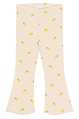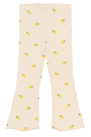 Smilla Flared Rib Bukser fra The New Siblings er et skønt valg til børn, der elsker både komfort og stil. Bukserne er fremstillet i en blød og strækbar ribkvalitet, som sikrer god bevægelsesfrihed hele dagen. Det søde citronprint i Gardenia AOP giver et friskt og legende udtryk, der passer perfekt til forårets og sommerens garderobe. De flared ben og den let bølgede kant forneden tilføjer et moderne twist, som gør bukserne ekstra fine til både hverdag og festlige lejligheder. Den elastiske talje gør dem nemme at tage af og på, og den bløde bomuldsblanding føles behagelig mod huden. Kombinér dem med en enkel t-shirt eller en matchende top for et fuldendt look. Smilla Flared Rib Bukser er et sikkert hit hos de små, der sætter pris på både komfort og et sjovt design.