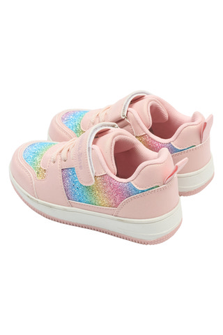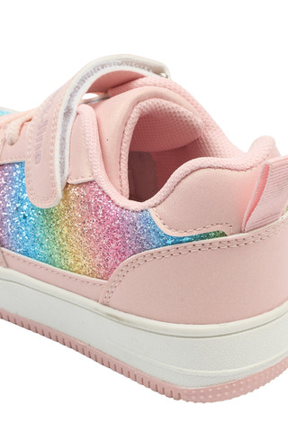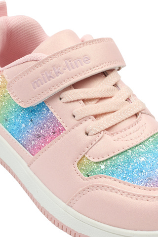 Sneakers Glitter - Adobe Rose fra Mikk-Line er den perfekte sko til børn, der elsker farver og glimmer. Skoen har en flot regnbuefarvet glitterdetalje på siden, som giver et festligt og livligt udtryk. Den lyserøde nuance kombineret med de glitrende farver gør skoen ekstra attraktiv for de små, der gerne vil skille sig ud. Skoen er designet med både velcrolukning og elastiksnøre, hvilket gør det nemt for barnet selv at tage skoen af og på – en stor fordel i en travl hverdag. Den lette og fleksible sål sikrer god komfort og bevægelsesfrihed, så barnet kan lege og løbe uden besvær. Indersiden er blød og behagelig, hvilket gør skoen velegnet til både daglig brug og festlige lejligheder. Sneakers Glitter er et oplagt valg til børn, der ønsker både stil og funktionalitet i deres fodtøj.