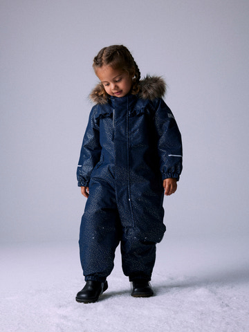 - Ekstra detaljer: Dekorative reflekterende detaljer, aftagelig detalje i imiteret pels, aftagelig hætte for sikkerhed, elastisk talje, lynlåsbeskytter for at forhindre, at lynlåsen fanger i huden, isoleret sædeområde for at holde dit barn varmt, når det sidder udenfor