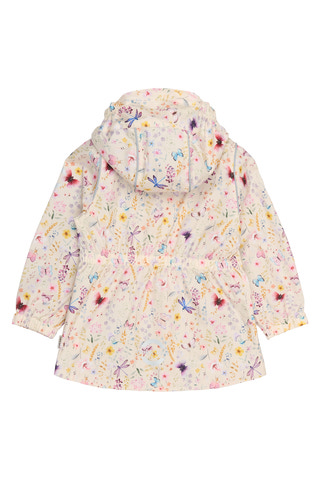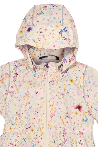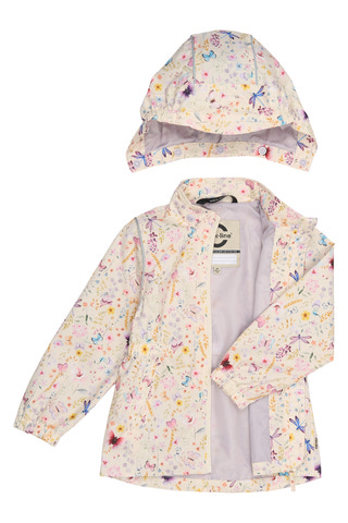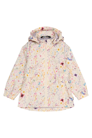 Sommerjakke fra Mikk-line med et charmerende printmønster (AOP) af farverige sommerfugle og fugle iblandt fine forårsblomster. Denne lækre sommerjakke til piger er lavet af polyester og overfladebehandlet med BIONIC-FINISH® ECO, som er uden PFAS/flourstoffer.  Det er en fantastisk overgangsjakke til skiftende vejr, da den er både vindtæt, vandtæt og har en god åndbarhed. Den er også blød, let og behagelig, så dit barn kan løbe, hoppe og lege frit. Jakken har et indvendigt navneskilt med plads til mere end ét navn, så giv den gerne videre, så endnu et barn kan få glæde af den.