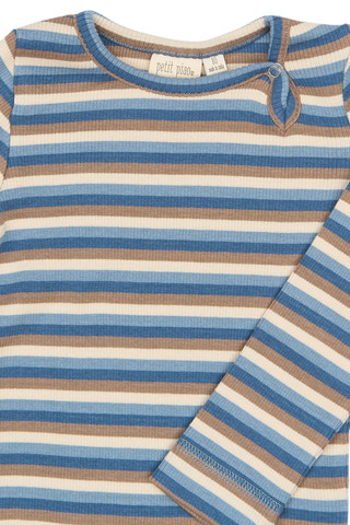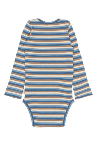 Song Langærmet Body fra PETIT PIAO er en skøn og funktionel body til de mindste, designet med fokus på både komfort og stil. Bodyen har lange ærmer, hvilket gør den ideel til brug året rundt – både alene på varme dage eller som et ekstra lag under andet tøj, når det er køligere. De flotte infinity multistriped striber i blå, beige og hvide nuancer giver et moderne og legende udtryk, som passer til både drenge og piger. Bodyen er fremstillet i bløde og behagelige materialer, der sikrer, at dit barn kan bevæge sig frit og komfortabelt hele dagen. Den praktiske trykknaplukning mellem benene gør det nemt og hurtigt at skifte ble, og den smarte halsudskæring gør det let at tage bodyen af og på, uden at det generer barnet. Kvaliteten fra PETIT PIAO er i top, og bodyen holder både form og farver, selv efter mange vaske. Perfekt til hverdagsbrug og som basisdel i garderoben.