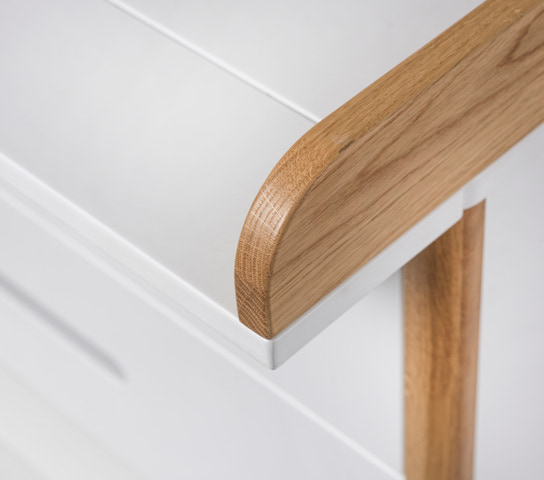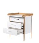 Når der skal skiftes ble, skiftes tøj eller hygges efter badet, er det vigtigt med en overskuelig og funktionel pusleplads. Spoke puslekommoden har tre rummelige skuffer, der giver god opbevaringsplads til alt det nødvendige.