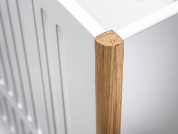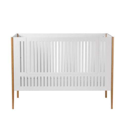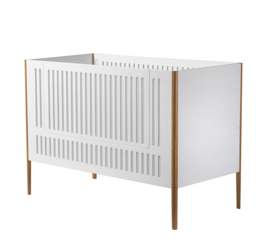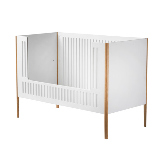 Spoke er resultatet af et samarbejde med det danske designstudio Says Who, skabt med ambitionen om at gøre godt design tilgængeligt for alle. Tremmesengen forener æstetik og funktionalitet i et let og tidløst udtryk, hvor de markante ben i massivt egetræ skaber en smuk kontrast til den moderne hvide finish.