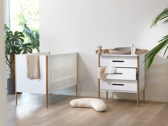 kundeservice@babysam.dkSpoke er resultatet af et samarbejde med det danske designstudio Says Who, skabt med ambitionen om at gøre godt design tilgængeligt for alle. Tremmesengen forener æstetik og funktionalitet i et let og tidløst udtryk, hvor de markante ben i massivt egetræ skaber en smuk kontrast til den moderne hvide finish.