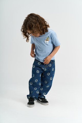 Stanley T-Shirt fra The New Siblings i farven Forever Blue er et skønt valg til børnegarderoben. T-shirten er lavet af 100% økologisk bomuld, hvilket sikrer en blød og behagelig følelse mod huden – perfekt til selv de mindste. Den lyseblå nuance giver et friskt og moderne udtryk, mens det sjove print på brystet tilføjer et legende og personligt touch. T-shirten har en klassisk rund hals og korte ærmer, hvilket gør den ideel til både leg og afslapning. Den økologiske bomuld gør ikke kun t-shirten behagelig, men også et mere bæredygtigt valg, der tager hensyn til både dit barn og miljøet. Stanley T-Shirt er nem at matche med både shorts, bukser og nederdele, og den holder sig flot vask efter vask. Perfekt til både hverdag og festlige lejligheder, hvor komfort og stil går hånd i hånd.