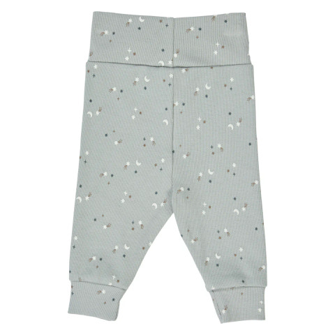 Dejlig bløde bukser i rib til de mindste. Smukt gennemgående print af stjerner. Bukserne har en bred og elastisk kant foroven som kan foldes efter behov og stil.