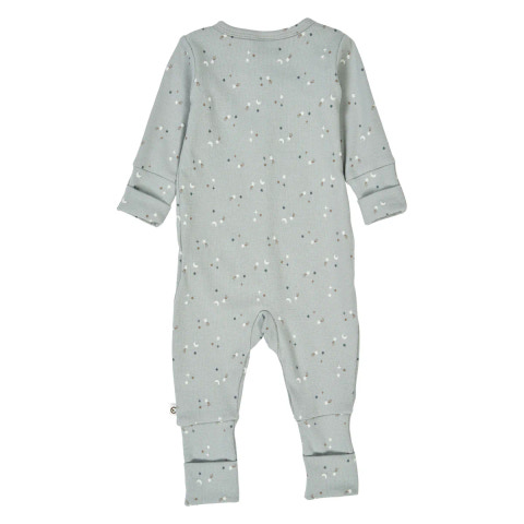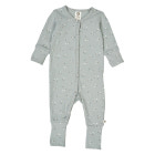 Skøn heldragt i blød blød rib kvalitet. Smukt gennemgående print af stjerner. Heldragten lukkes fortil med tryklåse og har vendbare fødder og hænder. Dragten er perfekt til de små for at sikre at de ligger lunt og trygt. De vendbare fødder og hænder kan foldes efter behov.