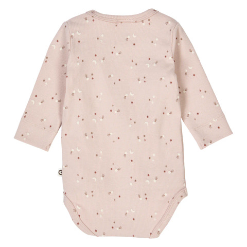 Stars Rib Wrap Body fra Müsli er en skøn og blød body, der er perfekt til din babys sarte hud. Den er lavet af 100% økologisk bomuld og er GOTS-certificeret, hvilket sikrer, at både miljø og dit barns velvære er i fokus. Det praktiske wrap-design gør det nemt at tage bodyen af og på, uden at skulle trække den over barnets hoved. Ribstrukturen giver ekstra strækbarhed og komfort, så dit barn kan bevæge sig frit hele dagen. Med Müsli får du både kvalitet, funktionalitet og et tidløst design, der passer til enhver garderobe.