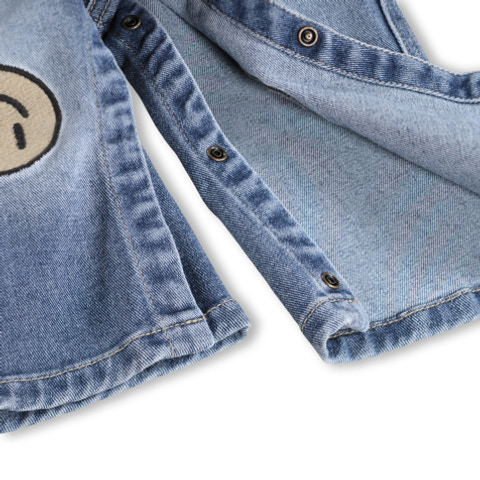 kundeservice@babysam.dkStellan Overall fra Molo i farven Vintage Blue er et skønt valg til børn, der elsker at lege og bevæge sig frit. Overallen har et klassisk denimlook med et twist – på hvert knæ er der broderet et smilende ansigt, som giver et legende og positivt udtryk. De justerbare seler sikrer, at overallen kan tilpasses barnets højde, og de praktiske lommer foran og bagpå giver plads til små skatte og nødvendigheder. Materialeblandingen af bomuld, polyester, viskose og elastan gør overallen både blød, fleksibel og slidstærk, så den kan holde til mange timers leg. Den brede pasform og de fine detaljer som bæltestropper og knapper i siden gør det nemt at tage overallen af og på. Stellan Overall er perfekt til både hverdag og festlige lejligheder, og kan styles med en t-shirt eller en varm trøje under, alt efter årstid. Molo er kendt for deres kreative og funktionelle børnetøj, og denne overall er ingen undtagelse – den kombinerer komfort, kvalitet og et sjovt design, som børn vil elske.