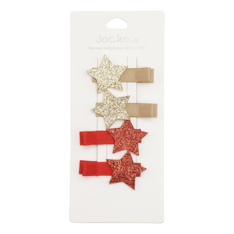 Miks pakke med 2 stk stjerne spænder i guld og 2 stk. i rød
