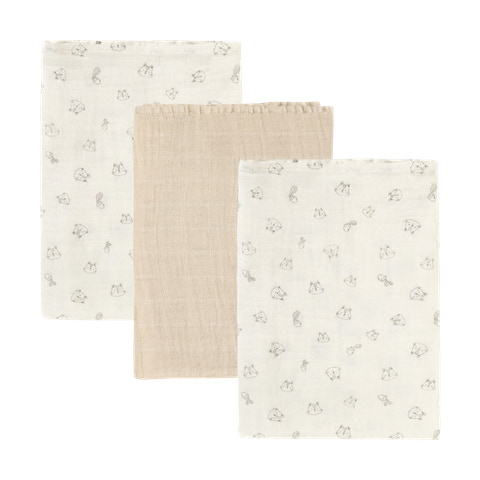 3-pak stofbleer i bomuld. Pakken indeholder ensfarvet stofbleer og all-over printet. Certificeret i hht. OEKO-TEX® STANDARD 100 Cert. No. 2276-364 DTI