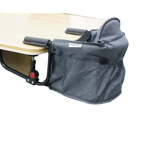 Barnstol på bord fra KAXHOLMEN – sikker, pladsbesparende og nem at tage med på farten. Maks. 15 KG.
