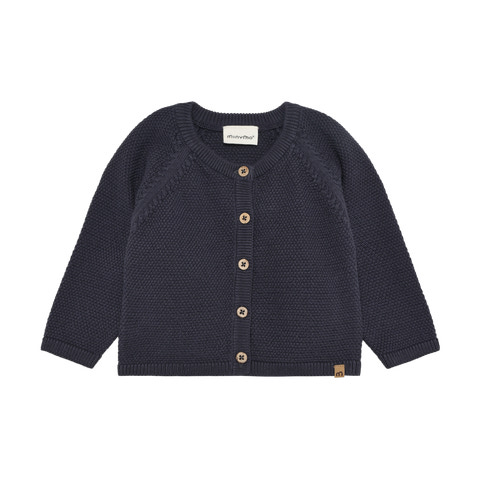Denne strikkede cardigan fra Minymo i farven Odyssey Gray er et must-have i enhver børnegarderobe. Cardiganen er fremstillet i en blød og behagelig strik, der holder barnet varmt på kølige dage. Det klassiske design med knaplukning foran gør den nem at tage af og på, og ribkanterne ved ærmer og bund sikrer en god pasform. Den flotte farve passer til det meste tøj og gør cardiganen alsidig til både hverdag og fest. Perfekt til lag-på-lag og ideel til både drenge og piger, der ønsker komfort og stil i hverdagen.