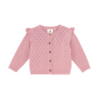 kundeservice@babysam.dkDenne strikkede cardigan fra En Fant er et skønt valg til garderoben, når der skal lidt ekstra varme og stil på. Cardiganen har et yndigt hulmønster og fine flæser ved skuldrene, som giver et feminint og elegant udtryk. Den bløde strik sikrer komfort hele dagen, og den klassiske knaplukning gør det nemt at tage cardiganen af og på. Ribkanter ved ærmer og bund sørger for en god pasform, mens den runde hals gør den let at kombinere med både kjoler og bluser. Perfekt til både hverdag og festlige lejligheder, hvor dit barn skal være både smart og komfortabel.
