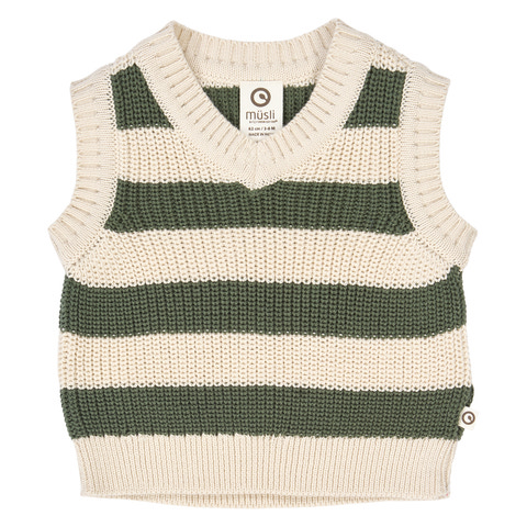 kundeservice@babysam.dkDenne bløde og behagelige strikvest er designet med lodrette striber og en klassisk V-udskæring, som giver et stilrent og tidløst look. Vesten er strikket i 100% bomuldsjacquard og er ideel som et ekstra lag på kølige dage.