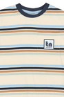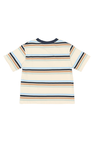 kundeservice@babysam.dkStuart T-Shirt fra The New Siblings er et skønt valg til hverdagsgarderoben, hvor komfort og stil går hånd i hånd. T-shirten er lavet af 100% økologisk bomuld, hvilket gør den ekstra blød og behagelig mod barnets hud – perfekt til både leg og afslapning. Det klassiske stribede mønster i gardenia, blå og brune nuancer giver et tidløst look, der nemt kan matches med både shorts, jeans eller nederdel. Den mørkeblå ribkant i halsen tilføjer et flot kontrast og sikrer, at t-shirten holder formen vask efter vask. På brystet finder du en lille lomme med et diskret tn-logo, som giver et moderne og legende udtryk. T-shirten har en afslappet pasform, der giver god bevægelsesfrihed, så barnet kan udfolde sig frit hele dagen. Med fokus på både kvalitet og bæredygtighed er Stuart T-Shirt et sikkert hit til enhver børnegarderobe.