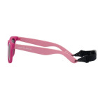 Bløde, fleksible solbriller til babyer i silikone. Elastikbåndet sættes rundt om hovedet, så de sidder på plads. Elastikbåndet kan tages af ved hjælp af spænder i enderne af brillestængerne og kan justeres for at sikre en perfekt pasform.