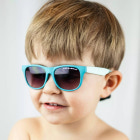 Bløde, fleksible solbriller til babyer i silikone. Elastikbåndet sættes rundt om hovedet, så de sidder på plads. Elastikbåndet kan tages af ved hjælp af spænder i enderne af brillestængerne og kan justeres for at sikre en perfekt pasform.