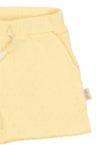 Suze Pointelle Shorts fra Petit Piao i farven Mellow Yellow er det perfekte valg til sommerens varme dage. Disse shorts er fremstillet i 100% økologisk bomuld, hvilket sikrer en blød og behagelig følelse mod huden – ideelt til børn med sensitiv hud eller forældre, der ønsker et bæredygtigt valg. Den fine pointelle-struktur giver shortsene et let og luftigt udtryk, samtidig med at de små huller i stoffet bidrager til ekstra ventilation, så barnet holdes køligt og komfortabelt hele dagen. Shortsene har en elastisk talje med et praktisk bindebånd, der gør det nemt at tilpasse pasformen, så de sidder godt uden at stramme. De to sidelommer tilføjer både et sødt udtryk og funktionalitet, så små skatte kan gemmes væk. Den bløde, gule nuance "Mellow Yellow" passer perfekt til sommergarderoben og kan nemt matches med både t-shirts og bluser. Kvaliteten og det enkle design gør shortsene velegnede til både leg og afslapning, og de kan vaskes igen og igen uden at miste form eller farve.
