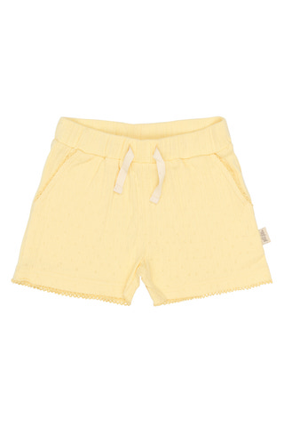 kundeservice@babysam.dkSuze Pointelle Shorts fra Petit Piao i farven Mellow Yellow er det perfekte valg til sommerens varme dage. Disse shorts er fremstillet i 100% økologisk bomuld, hvilket sikrer en blød og behagelig følelse mod huden – ideelt til børn med sensitiv hud eller forældre, der ønsker et bæredygtigt valg. Den fine pointelle-struktur giver shortsene et let og luftigt udtryk, samtidig med at de små huller i stoffet bidrager til ekstra ventilation, så barnet holdes køligt og komfortabelt hele dagen. Shortsene har en elastisk talje med et praktisk bindebånd, der gør det nemt at tilpasse pasformen, så de sidder godt uden at stramme. De to sidelommer tilføjer både et sødt udtryk og funktionalitet, så små skatte kan gemmes væk. Den bløde, gule nuance "Mellow Yellow" passer perfekt til sommergarderoben og kan nemt matches med både t-shirts og bluser. Kvaliteten og det enkle design gør shortsene velegnede til både leg og afslapning, og de kan vaskes igen og igen uden at miste form eller farve.