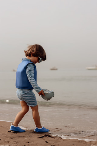 kundeservice@babysam.dkSvømmevesten fra Vanilla COPENHAGEN i farven Azure er et ideelt valg til børn, der skal lære at svømme eller bare have ekstra tryghed i vandet. Vesten er designet med fokus på både sikkerhed og komfort, så barnet kan bevæge sig frit og ubesværet under leg og svømning. Materialet består af blød neopren og polyester, som sikrer en behagelig pasform og god varmeisolering, så barnet ikke bliver koldt, selv efter længere tid i vandet. Den smarte lynlås foran gør det nemt at tage vesten af og på, mens den ekstra velcrolukning giver et sikkert og tæt fit, så vesten bliver siddende, selv under aktiv leg. Den flotte azure blå farve gør vesten synlig i vandet, hvilket øger sikkerheden og gør det nemt for voksne at holde øje med barnet. Svømmevesten er let og fleksibel, og den er velegnet til både pool, strand og svømmehal. Husk, at svømmevesten ikke er en redningsvest og derfor kun bør bruges under opsyn af voksne. Med Vanilla COPENHAGENs svømmevest får du et kvalitetsprodukt, der kombinerer funktionalitet, sikkerhed og flot design, så dit barn kan nyde vandet med ekstra tryghed.