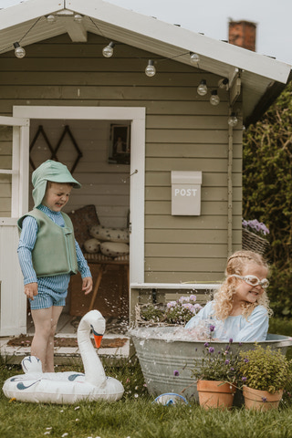 kundeservice@babysam.dkSvømmevesten med strop fra Vanilla COPENHAGEN i farven Fern er designet til at give dit barn tryghed og frihed, når der skal leges og svømmes i vandet. Vesten er fremstillet af blødt neopren og polyester, hvilket sikrer en behagelig pasform og god bevægelsesfrihed. Den indbyggede strop mellem benene sørger for, at vesten bliver siddende korrekt, selv under aktiv leg, og forhindrer at den glider op. Lynlåsen på fronten gør det nemt at tage vesten af og på, mens den ekstra velcrolukning giver ekstra sikkerhed, så vesten altid sidder godt fast. Materialet er hurtigtørrende og behageligt mod huden, hvilket gør vesten ideel til både pool, strand og svømmehal. Svømmevesten er ikke en redningsvest, men et hjælpemiddel til at lære at svømme og føle sig tryg i vandet. Den er let og fleksibel, så barnet kan bevæge sig frit og nyde vandet med maksimal komfort. Vesten er velegnet til børn, der skal lære at svømme, og giver forældre ro i sindet, når de små er i vandet. Husk altid at holde opsyn med børn, når de bader.