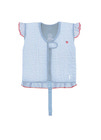 kundeservice@babysam.dkSvømmevesten med strop fra Vanilla COPENHAGEN i det charmerende Seersucker Ladybug Blue-design er et ideelt valg til børn, der skal lære at svømme eller bare have ekstra tryghed i vandet. Vesten er fremstillet i blødt neopren og polyester, hvilket sikrer en behagelig pasform og god bevægelsesfrihed, så barnet kan lege og svømme frit. Den praktiske strop mellem benene sørger for, at vesten bliver siddende korrekt og ikke glider op, hvilket øger sikkerheden. De fine flæser på skuldrene og de diskrete kontrastkanter giver vesten et sødt og legende udtryk, som børn vil elske. Vesten er let at tage af og på med lynlås og velcrolukning foran, og den er designet til at give opdrift, så barnet kan føle sig trygt i vandet. Husk, at svømmevesten ikke er en redningsvest og bør altid bruges under opsyn af en voksen. Den er perfekt til pool, strand og svømmehal, og det slidstærke materiale gør den nem at rengøre og vedligeholde. Vanilla COPENHAGEN har med denne vest skabt en kombination af sikkerhed, komfort og stil, så både børn og forældre kan nyde vandleg med ro i sindet.