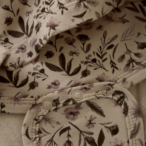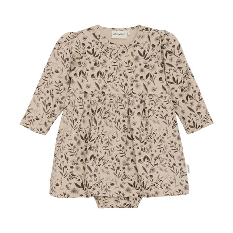 Denne langærmede kjole fra Minymo er dekoreret med et smukt, blomstret all-over print, der giver et sødt og feminint udtryk. Kjolen har en indbygget body med praktiske trykknapper, som gør den nem at tage af og på – perfekt til aktive småbørn.
