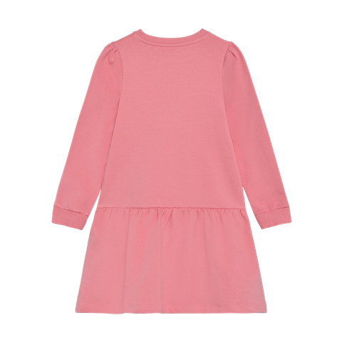 En yndig og komfortabel kjole fra Minymo i en fin lyserød nuance, prydet med et farverigt Paw Patrol-print på fronten. Kjolen har lange ærmer og praktiske trykknapper ved den ene skulder, som gør den nem at tage af og på. Ribkanter ved hals og ærmer sikrer en god pasform, og det let rynkede skørt giver et feminint og legende udtryk – perfekt til små Paw Patrol-fans!