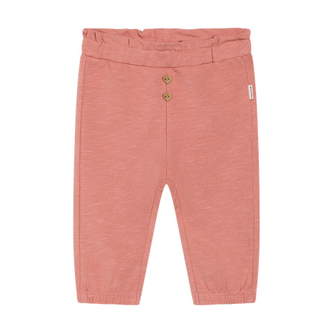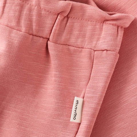Sweatpants - Rosette fra Minymo er et skønt valg til hverdagsgarderoben, hvor komfort og bevægelsesfrihed er i fokus. Bukserne er lavet i en blød og strækbar kvalitet, der føles behagelig mod huden og giver barnet mulighed for at lege og bevæge sig frit hele dagen. Den fine rosette farve tilføjer et feminint og moderne udtryk, mens de små hjerteknapper foran giver et ekstra sødt touch. Bukserne har elastik i taljen, som sikrer en god og fleksibel pasform, og elastik ved anklerne, så de sidder godt uden at stramme. Sweatpantsene er nemme at tage af og på, hvilket gør dem ideelle til både vuggestue, børnehave og hyggelige stunder derhjemme.