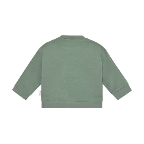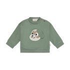 Minymo Sweatshirt - Lily Pad er en charmerende og komfortabel trøje til de mindste. Den bløde bomuldskvalitet sikrer, at barnet kan bevæge sig frit og ubesværet hele dagen. Det søde hundemotiv på fronten med en sjov 3D-øre detalje gør trøjen ekstra sjov og indbydende for børn. Praktiske trykknapper på skulderen gør det nemt at tage trøjen af og på, hvilket er en stor fordel i hverdagen. Ribkanter ved ærmer og bund sikrer en god pasform og holder trøjen på plads, selv når barnet leger og bevæger sig. Sweatshirten er perfekt til både hverdag og hyggestunder, og den flotte grønne farve passer til det meste.