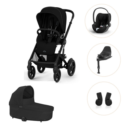 I denne komplette pakke medfølger der Talos S Lux klapvogn, Cot S Lux liggedel, Cloud T I-Size autostol, Base T og Adaptere.
