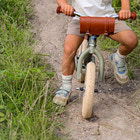 Sød og nostalgisk taske i retrodesign, lavet i kunstlæder. Den har praktiske læderstropper, der gør, at den kan sættes fast på cykelstyret. Den passer perfekt til løbecyklerne fra Trybike. Tasken har plads til, at barnet kan få det "allervigtigste" med på tur. 18x9,5x5,5 cm.