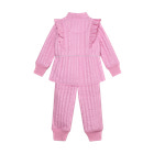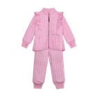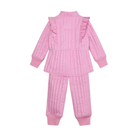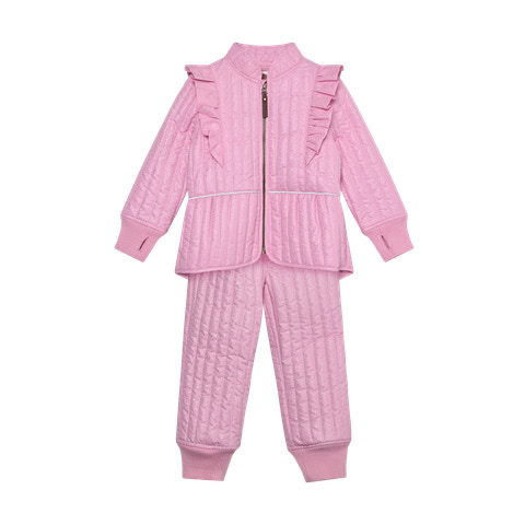 Termosæt m. Glitter fra En Fant er det perfekte valg til de kølige dage, hvor dit barn skal holdes varmt og samtidig se smart ud. Sættet består af en quiltet jakke og matchende bukser, begge med en flot glimmerfinish, der giver et festligt og moderne udtryk. Jakken har fine flæser langs skuldrene, som tilføjer et feminint touch, og ribkanter ved håndled og ankler sikrer en god pasform og komfort. Sættet er designet med praktiske lommer og lynlås, så det er nemt at tage af og på. Termosættet er ideelt til leg i haven, på legepladsen eller som ekstra lag under overtøjet på de kolde dage. Materialet er slidstærkt og let, hvilket gør det behageligt for barnet at bevæge sig i, og det er nemt at vedligeholde.