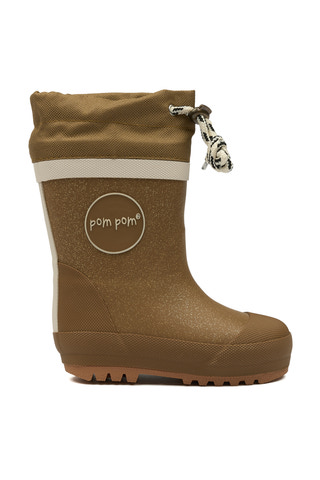 kundeservice@babysam.dkPom Pom® GumBoots™ Thermo er en smuk gummistøvle i naturgummi med et mat look og logo på siderne. Støvlen er højere og har en bred tekstilkant øverst. Tekstilet kan strammes med en fin snor og en metalstopper. Indersiden er foret med blød uld, og bunden har en aftagelig sål. Støvlen er blød og fleksibel, og sålen har et ribbet mønster, der giver godt fodfæste.