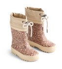 Termogummistøvlerne har et bredt stykke vandtæt stof øverst, der kan bindes ind, så støvlerne sidder tæt omkring dit barns ben. De er normale i størrelsen og er nemme for dit barn at glide i.
