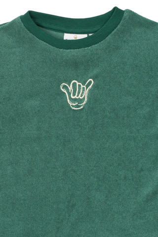 kundeservice@babysam.dkTerry T-Shirt - Posy Green fra The New Siblings er en skøn og komfortabel t-shirt, der er perfekt til både leg og afslapning. T-shirten er lavet i en blød frotté kvalitet, som føles behagelig mod huden og giver et afslappet look. Den flotte grønne farve og det broderede motiv på brystet gør t-shirten ekstra cool og unik. Med sin klassiske pasform og korte ærmer er den ideel til varme dage, hvor barnet skal kunne bevæge sig frit. Materialet består af en blanding af bomuld og polyester, hvilket sikrer både åndbarhed og holdbarhed. T-shirten er nem at vaske og holder formen, selv efter mange ture i vaskemaskinen. Den er oplagt til både hverdagsbrug og ferier, hvor komfort og stil går hånd i hånd. Kombinér den med shorts eller jeans for et afslappet og moderne look, der passer til enhver lejlighed. Terry T-Shirt - Posy Green er et must-have i garderoben til børn, der elsker at være aktive og samtidig se smarte ud.